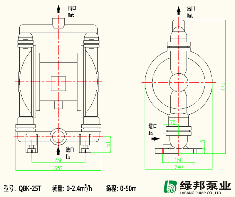 QBK-25TD鑄鐵氣動隔膜泵外形安裝尺寸CAD圖: