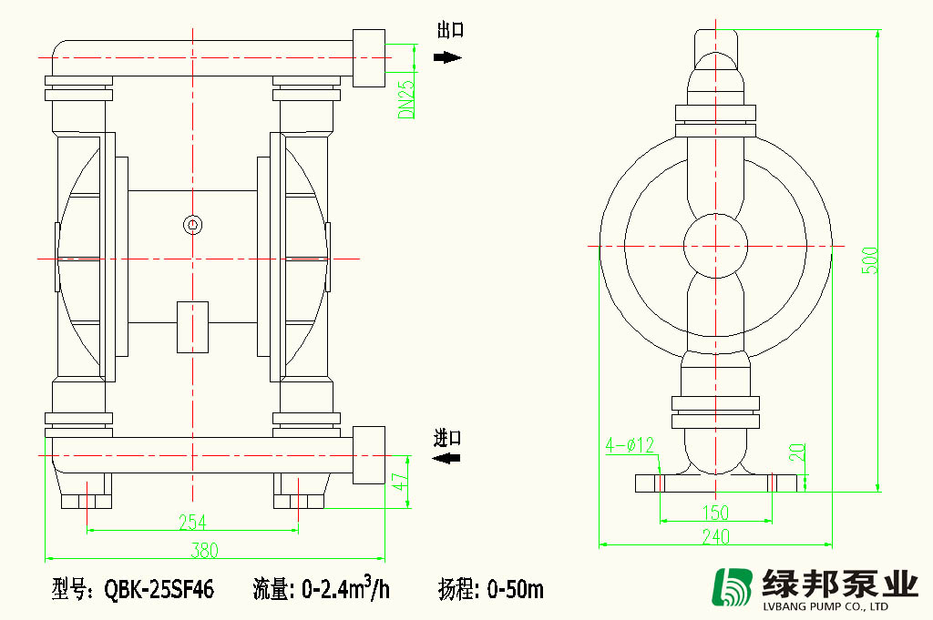泵體(兩邊立柱,進(jìn)出口管)采用優(yōu)質(zhì)PVDF材質(zhì),配四氟材質(zhì)密封球、密封球座,F(xiàn)46隔膜片,重量輕,適合輸送常溫酸堿介質(zhì),因其采用非金屬材質(zhì)也受到礦地用戶青睞。