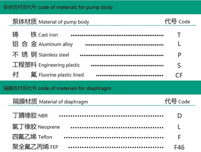 1、鑄鐵、鋁合金隔膜泵原配膜片、球、球座為丁晴橡膠。襯氟|工程塑料隔膜泵、不銹鋼隔膜泵原配膜片為在丁晴橡膠膜片的基礎(chǔ)上加配F46膜片、球、球座為聚四氟乙烯。