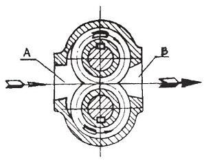 嚙合的齒輪在泵體內(nèi)旋轉(zhuǎn)時,輪齒不斷進(jìn)入和退出跟嚙合。在吸入室,輪齒逐漸退出嚙合狀態(tài),這樣吸入室的容積逐漸增大,壓力降低,液體在液面壓力的作用下進(jìn)入吸入室,隨齒輪齒間進(jìn)入排出室。在排出室,輪齒又逐漸進(jìn)入嚙合狀態(tài),齒輪的齒間逐漸被一齒輪的輪齒占據(jù),排出室的容積減少,排出室內(nèi)液體壓力升高,于是液體從泵的排出口被排出泵外,齒輪邊續(xù)旋轉(zhuǎn),上述過程不斷進(jìn)行,形成連續(xù)的輸油過程。